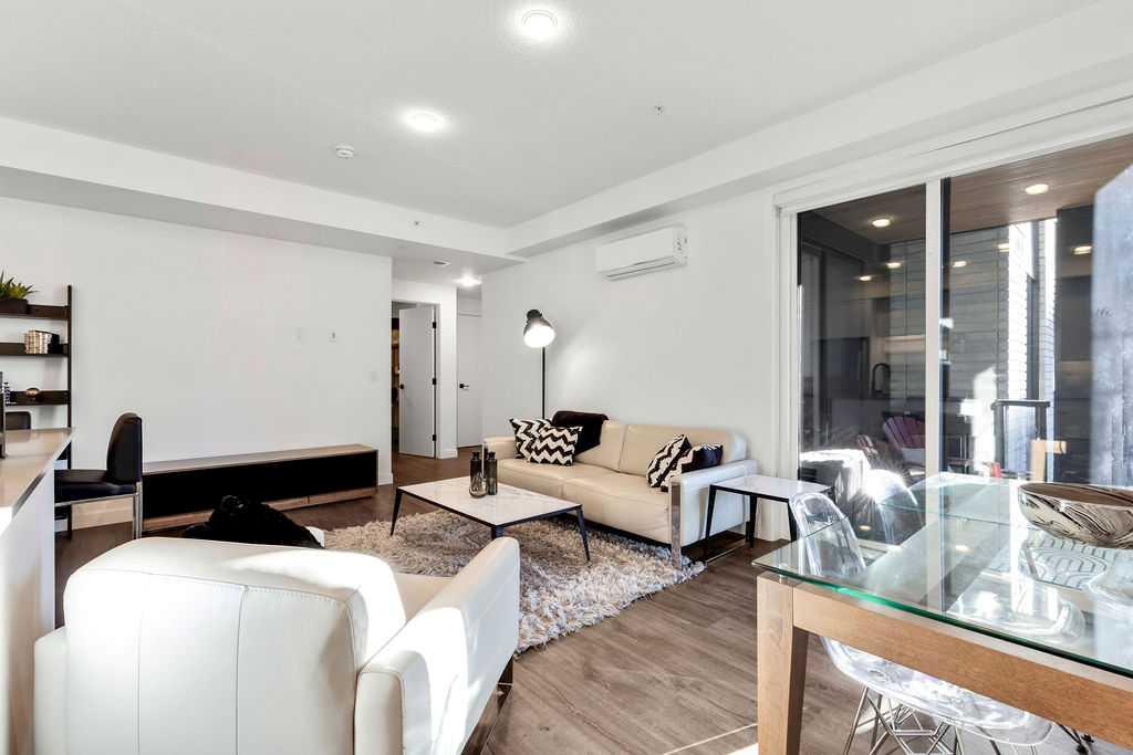 Former show suite in the stylish August building, furniture is included. This 2-bedroom, 2-full bathroom, plus den/3rd bedroom suite is a lovely, open-plan overlooking University Avenue. Features include 2-titled underground parking stalls, 9ft ceilings, upgraded luxury vinyl plank flooring, full-height cabinets, stainless steel appliances, quartz countertops, full-height backsplash, triple pane windows, and one of the largest balconies. This former show suite is equipped with 3 A/C units, 1 in each of the bedrooms and the third in the living room, storage unit, and bike storage. All are located in the heated underground parkade. The centrally located August building is ultra-convenient with restaurants, theaters, coffee shops, and groceries all easily walkable out your front door. Enjoy the amenities the building has to offer which include a 700 square foot lounge with kitchen located off the main lobby, car wash bay in the parade, a 4200 sqft rooftop patio with bench seating, planters and gas fireplace. Book your private showing today.